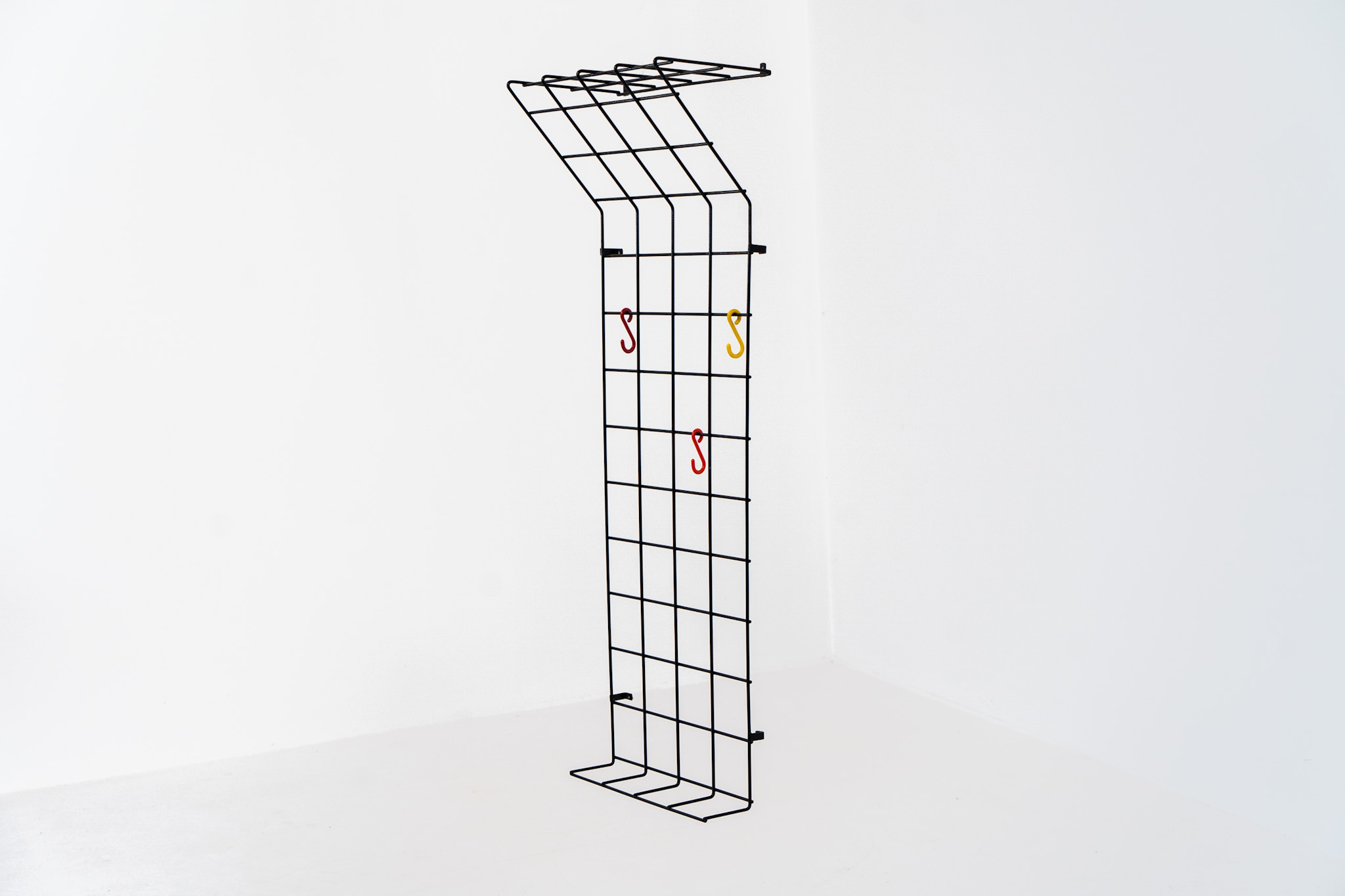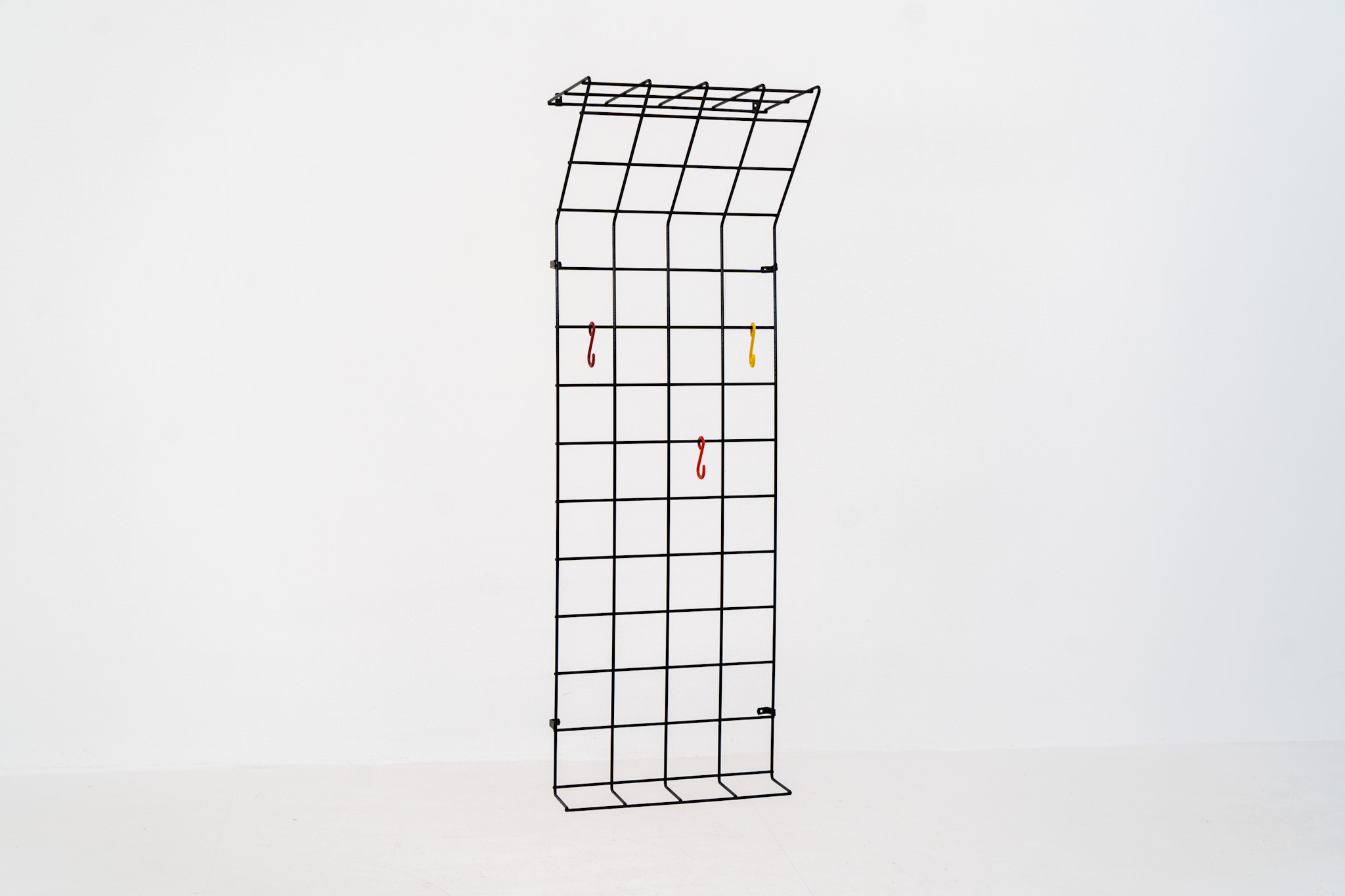 Wall-mounted wire coatrack by Karl Fichtel for Drahtwerke Erlau (Germany, 1950s).