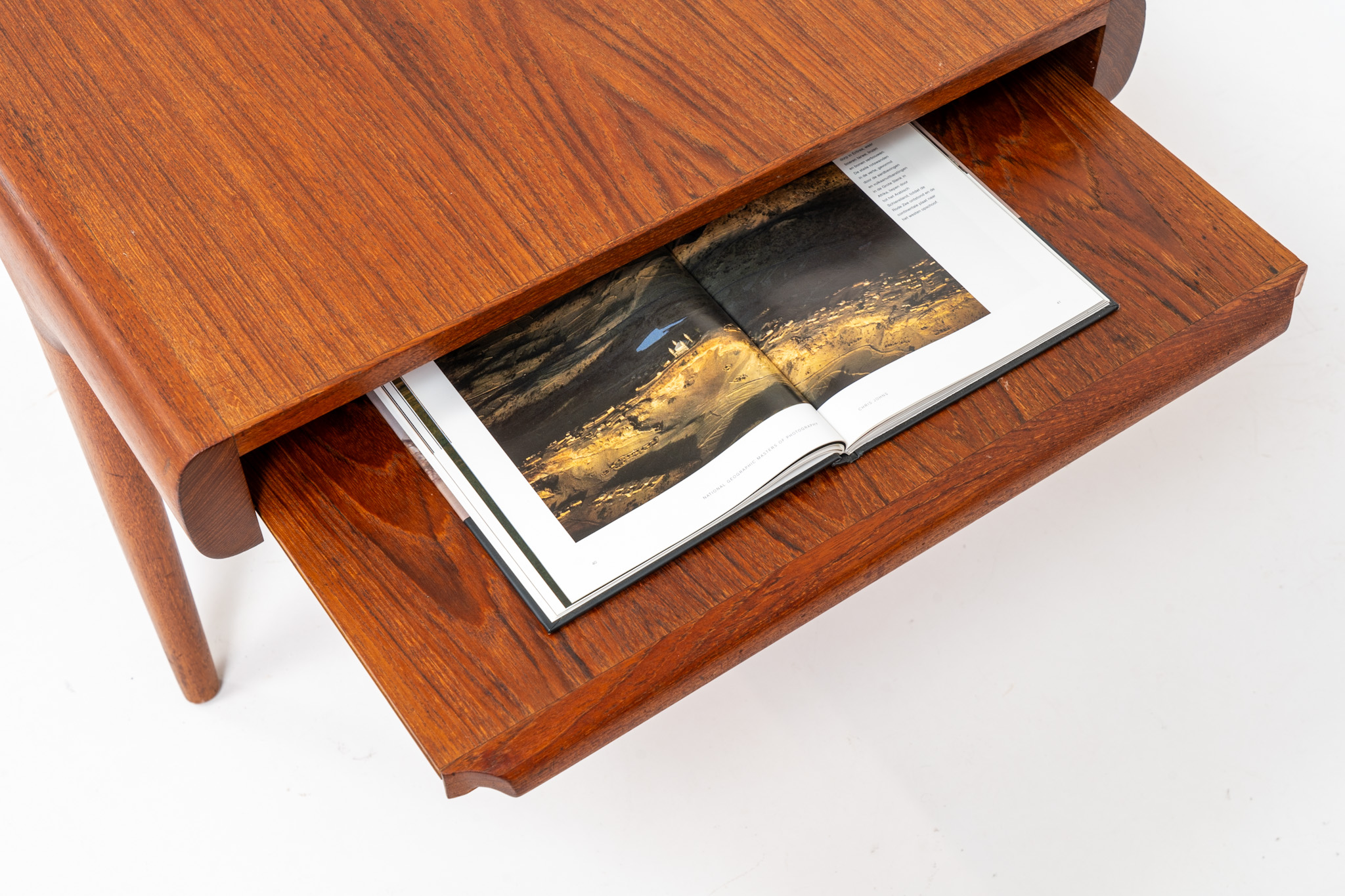 An amazing piece with stunning organic shapes! Built with very high quality It’s extendable on both sides. One side with an open shelve (perfect to store a laptop or magazines), the other side with a hidden shelve.